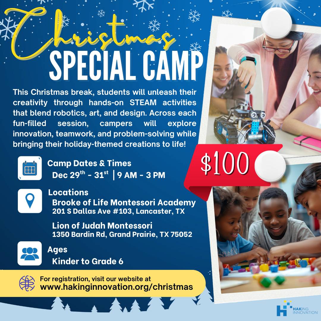 This Christmas break, students will unleash their imagination through hands-on STEAM activities that blend robotics, art, and design. Each fun-filled session empowers campers to think creatively, explore new skills, and build confidence while bringing their holiday-themed creations to life!